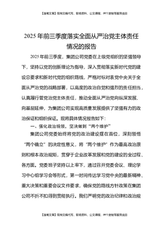 2025年前三季度落实全面从严治党主体责任情况的报告.docx
