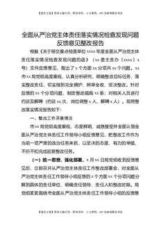 全面从严治党主体责任落实情况检查发现问题反馈意见整改报告.docx