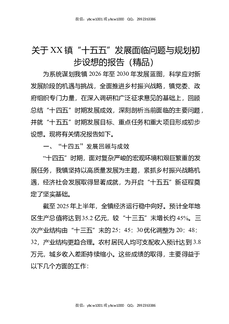 关于镇十五五发展面临问题与规划初步设想的报告.docx