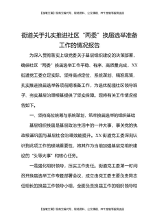 街道关于扎实推进社区两委换届选举准备工作的情况报告.docx