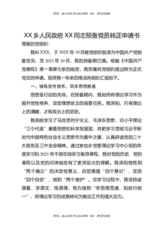 XX乡人民政府XX同志预备党员转正申请书.docx