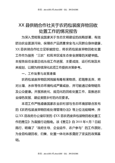 XX县供销合作社关于农药包装废弃物回收处置工作的情况报告.docx