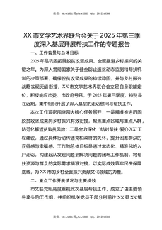 XX市文学艺术界联合会关于2025年第三季度深入基层开展帮扶工作的专题报告.docx