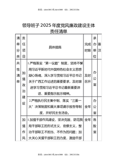 党组领导班子、领导班子主要负责人及领导班子其他成员2025年度党风廉政建设主体责任清单.docx