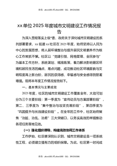 XX单位2025年度城市文明建设工作情况报告.docx