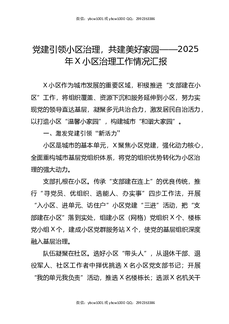 党建引领小区治理,共建美好家园——2025年X小区治理工作经验