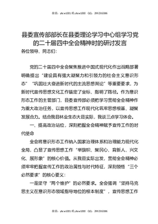 县委宣传部部长在县委理论学习中心组学习党的二十届四中全会精神时的研讨发言.docx