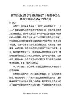 在市委统战部学习贯彻党的二十届四中全会精神专题研讨会议上的讲话.docx