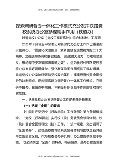探索调研督办一体化工作模式充分发挥铁路党校系统办公室参谋助手作用(铁道办).docx