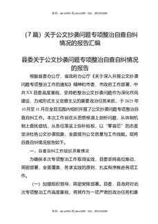 (7篇)关于公文抄袭问题专项整治自查自纠情况的报告汇编.docx