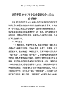 党员干部202X年参加市委党校个人党性分析材料.docx