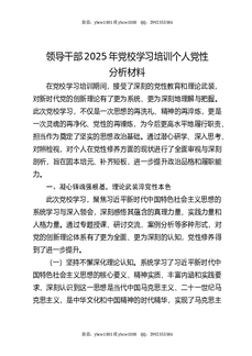 领导干部2025年党校学习培训个人党性分析材料.docx