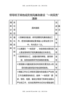 领导班子其他成员党风廉政建设“一岗双责”清单(表格版).docx
