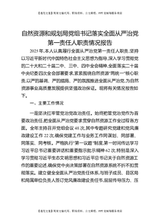 自然资源和规划局党组书记落实全面从严治党第一责任人职责情况报告.docx