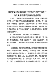 镇党委2025年度履行全面从严治党主体责任和党风廉政建设责任制情况报告.docx