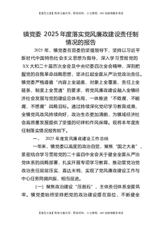 镇党委2025年度落实党风廉政建设责任制情况的报告.docx