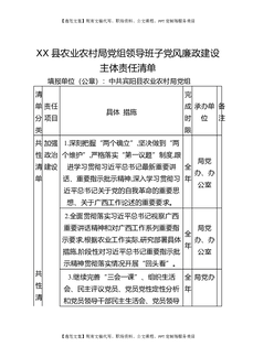 XX县农业农村局党组领导班子党风廉政建设主体责任清单.docx