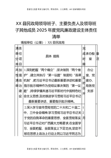 XX县民政局领导班子、主要负责人及领导班子其他成员2025年度党风廉政建设主体责任清单.docx