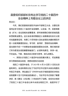 县委组织部部长在传达学习党的二十届四中全会精神上专题会议上的讲话.docx