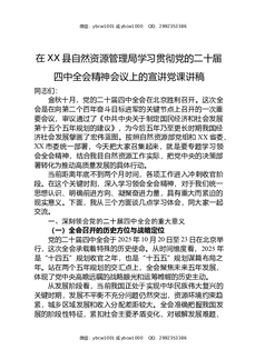 在XX县自然资源管理局学习贯彻党的二十届四中全会精神会议上的宣讲党课讲稿.docx
