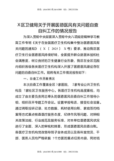 X区卫健局关于开展医德医风有关问题自查自纠工作的情况报告.docx