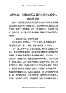 二十届四中全会精神心得体会:在推动单位发展的过程中实现个人的价值提升.docx