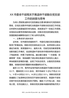 XX市委老干部局关于离退休干部联合党支部工作的探索与思考.docx
