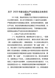 关于2025年度全面从严治党落实主体责任的报告.docx
