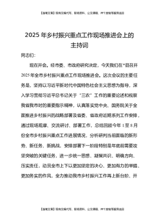 2025年乡村振兴重点工作现场推进会上的主持词.docx