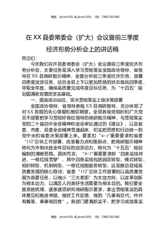 在XX县委常委会(扩大)会议暨前三季度经济形势分析会上的讲话稿.docx