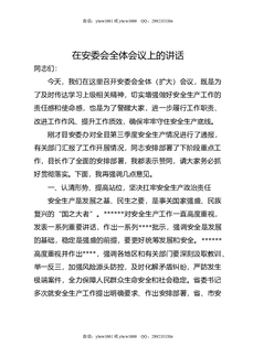 在安委会全体会议上的讲话.docx