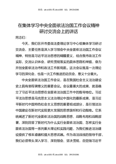在集体学习中央全面依法治国工作会议精神研讨交流会上的讲话.docx