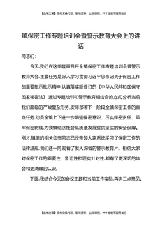 镇保密工作专题培训会暨警示教育大会上的讲话.docx