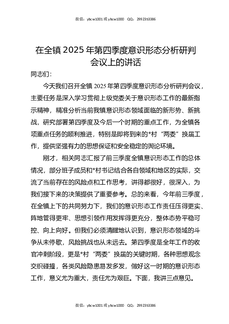 在全镇2025年第四季度意识形态分析研判会议上的讲话.docx