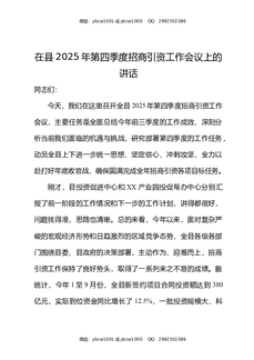 在县2025年第四季度招商引资工作会议上的讲话.docx