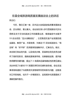 在县全域旅游高质量发展座谈会上的讲话.docx