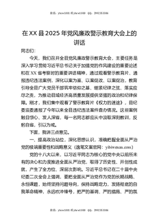 在XX县2025年党风廉政警示教育大会上的讲话.docx