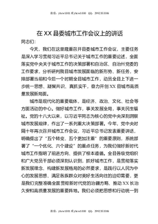 在XX县委城市工作会议上的讲话.docx