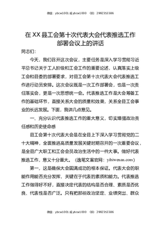 在XX县工会第十次代表大会代表推选工作部署会议上的讲话.docx