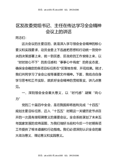 区发改委党组书记、主任在传达学习全会精神会议上的讲话.docx