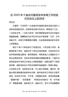 在2025年X省农村基层老年体育工作经验交流会议上的讲话.docx