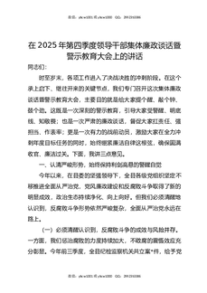 在2025年第四季度领导干部集体廉政谈话暨警示教育大会上的讲话.docx