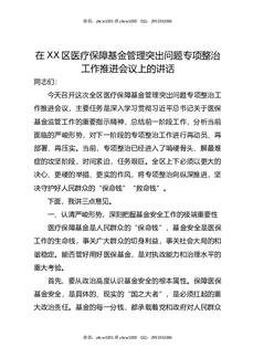 在XX区医疗保障基金管理突出问题专项整治工作推进会议上的讲话.docx