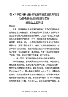 在XX单位特种设备领域遍访遍查遍改专项行动暨电梯安全隐患整治工作推进会上的讲话.docx