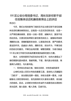 XX区公安分局党委书记、局长在新任职干部任前集体谈话和廉政教育会上的讲话.docx