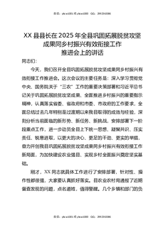 XX县县长在2025年全县巩固拓展脱贫攻坚成果同乡村振兴有效衔接工作推进会上的讲话2.docx