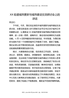 XX街道城市更新与城市建设交流研讨会上的讲话.docx