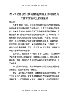 在XX区内校外培训机构消防安全培训暨近期工作部署会议上的讲话稿.docx