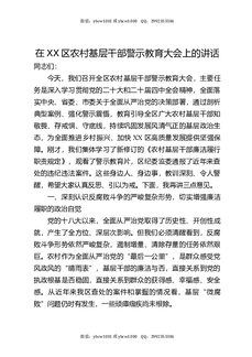 在XX区农村基层干部警示教育大会上的讲话.docx