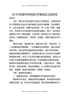在XX区城中村改造工作推进会上的讲话.docx